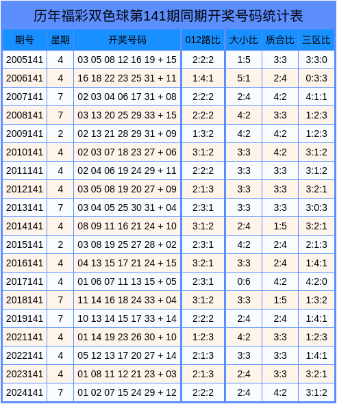 积年第2025141期双色球数据统计表